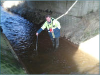 Umweltmonitoring, wie hier z.B. im Rahmen von Abflussmessungen an Bächen und Flüssen, sind ein weiteres Arbeitsgebiet. Mit einer Vielzahl von Messgeräten, Sonden etc. sind wir in der Lage auch schwierige Sachverhalte belastbar zu ermitteln.
